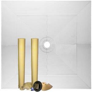 Whatever your shower installation needs, there is a ProAdvanced kit that fits. These kits make it as easy as possible for anyone — professional or not — to install a complete, leak-free tiled shower. Pre-cut sizes include 32″ x 60″, 48″ x 48″, 48″ x 72″, and 72″ x 72″ — but any of these can easily be cut to size to match your shower. Every kit comes in ABS or PVC connections. You can even install glass tiles.